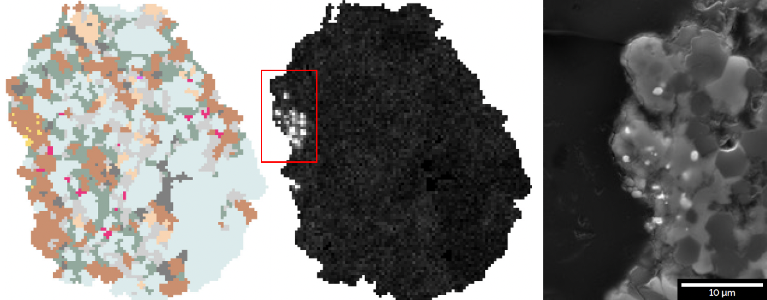 - Bright Phase Search mode can locate submicron-sized grains of gold or gold bearing materials.