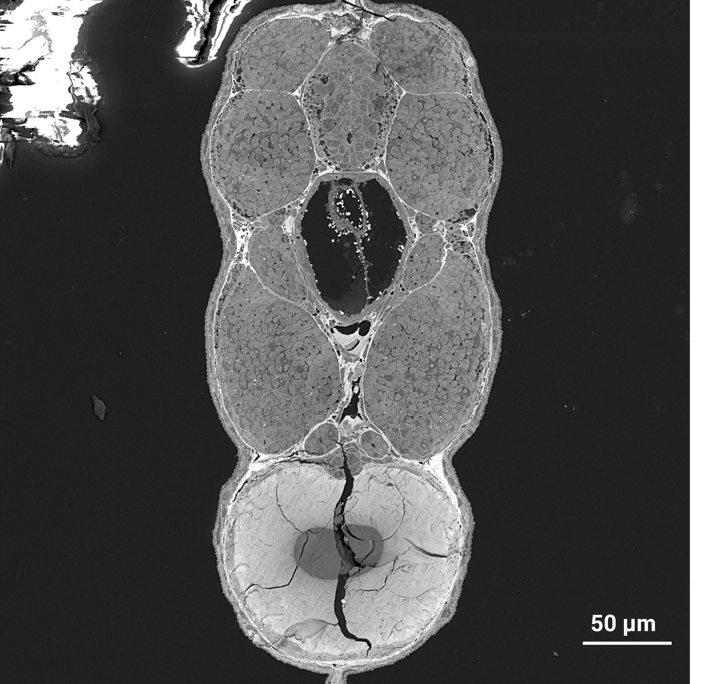 Map internal features of zebrafish embryos with Xe plasma FIB-SEM tomography, capturing early development in a single, uninterrupted run without compromise.