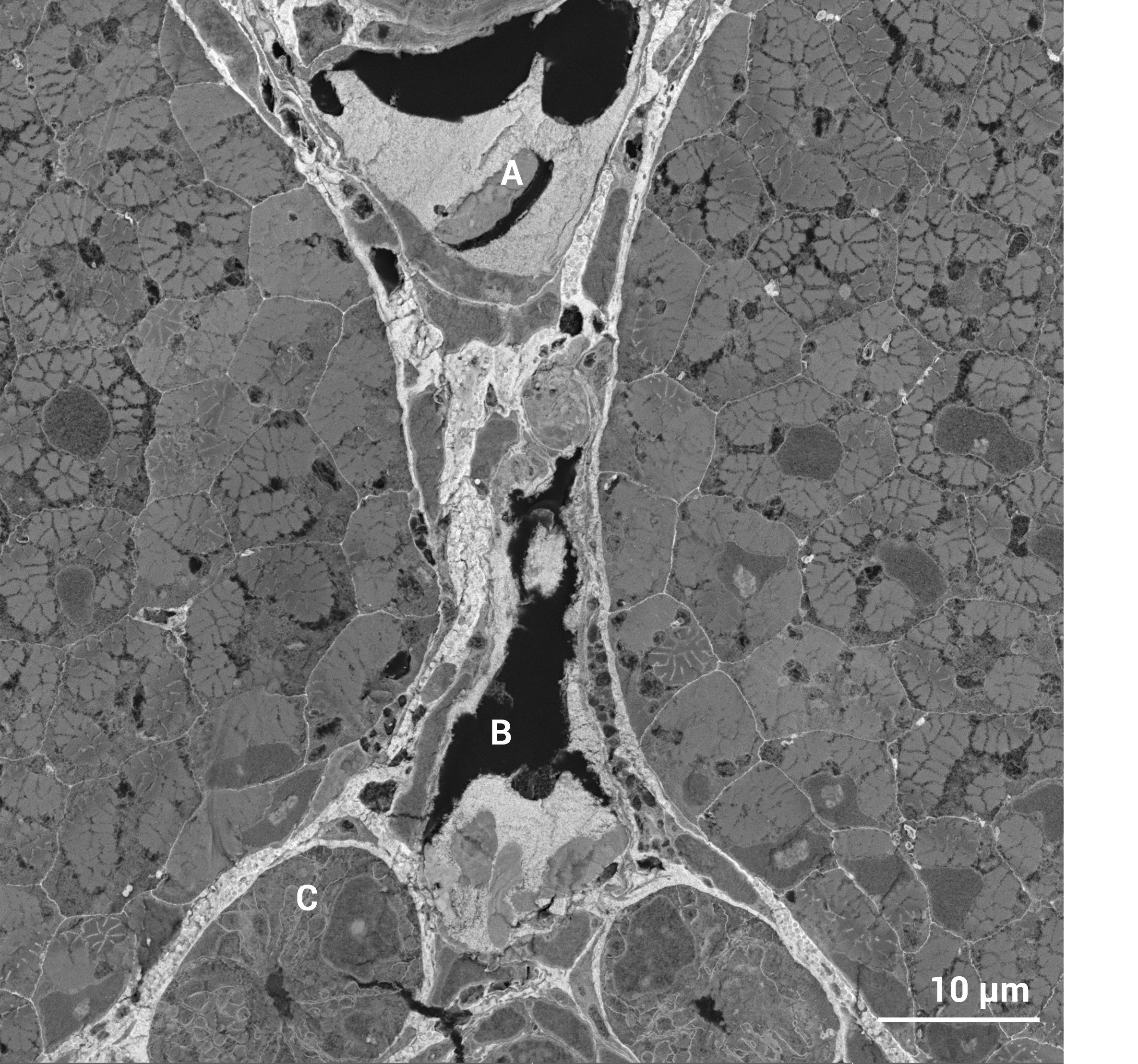 Overview images preserved broad anatomical context, while localized views revealed subcellular structures, tissue interfaces, and vascular pathways with nanometer precision. The reconstructed datasets captured continuous spatial relationships across tissues, eliminating the alignment errors that often occur when imaging must be split into multiple sessions.