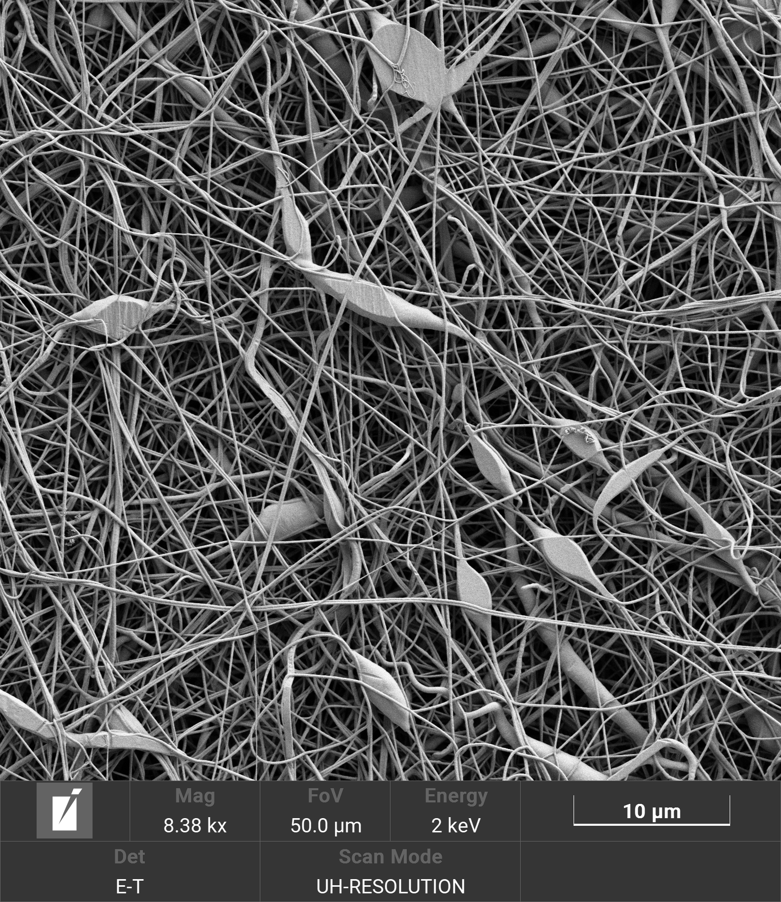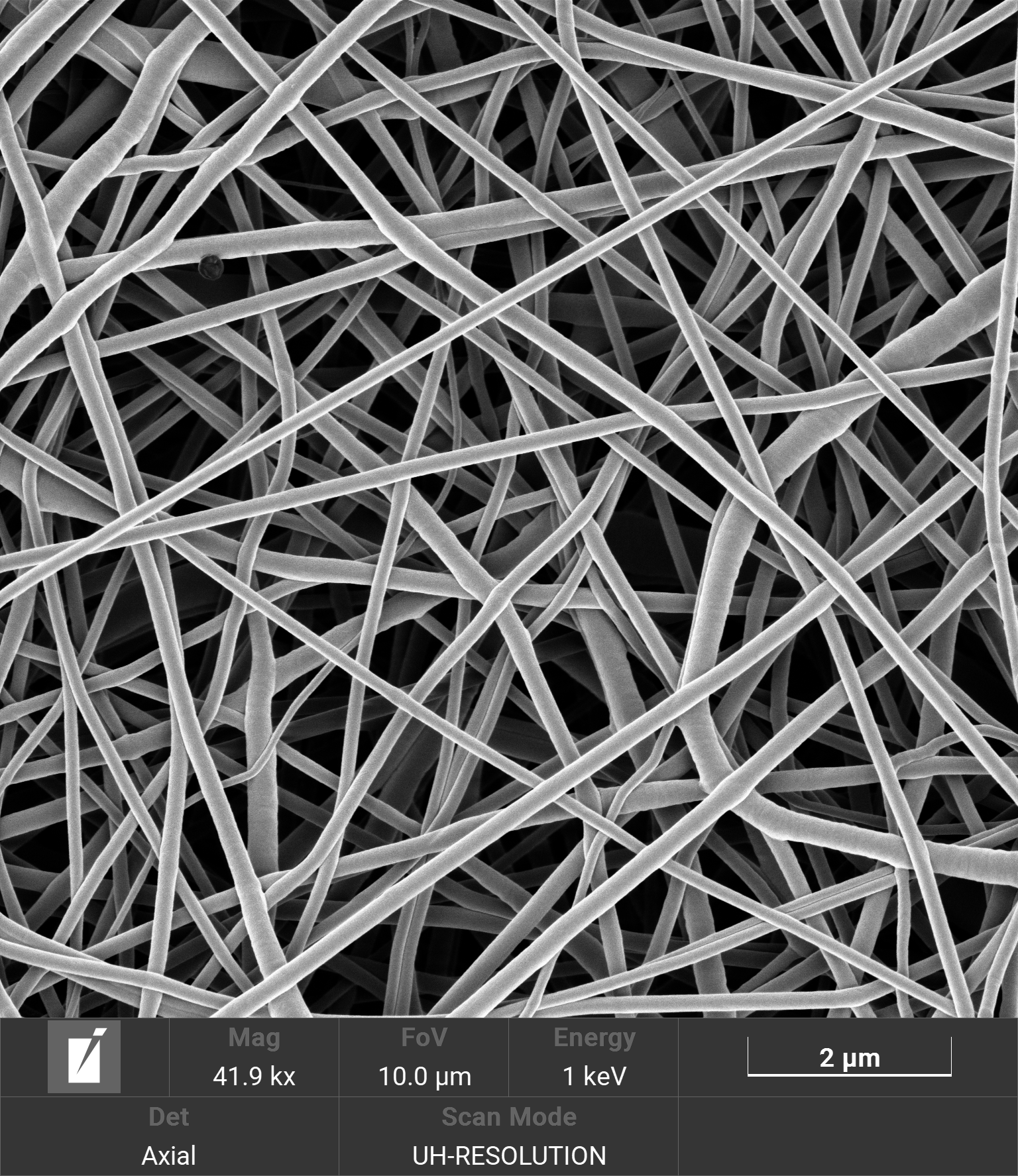 Polymer nanofiber structures challenge the limits of conventional light microscopy due to their sub-micron diameters and low contrast. While some features may fall within the resolving capability of high-end optical systems, detailed visualization and analysis require a more advanced approach. Scanning electron microscopy (SEM) offers the high spatial resolution and depth of field necessary to characterize fiber morphology, surface texture, and structural uniformity at the nanoscale. However, because nanofibers are often beam- and heat-sensitive, SEM imaging must also be carefully optimized to preserve sample integrity throughout the analysis.