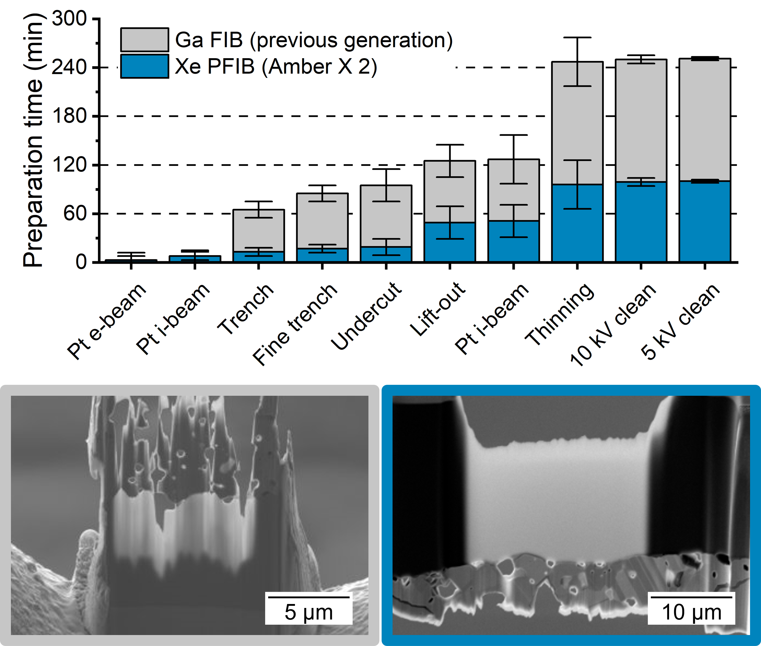 • Xe plasma FIB: fast, non-reactive milling with minimal contamination