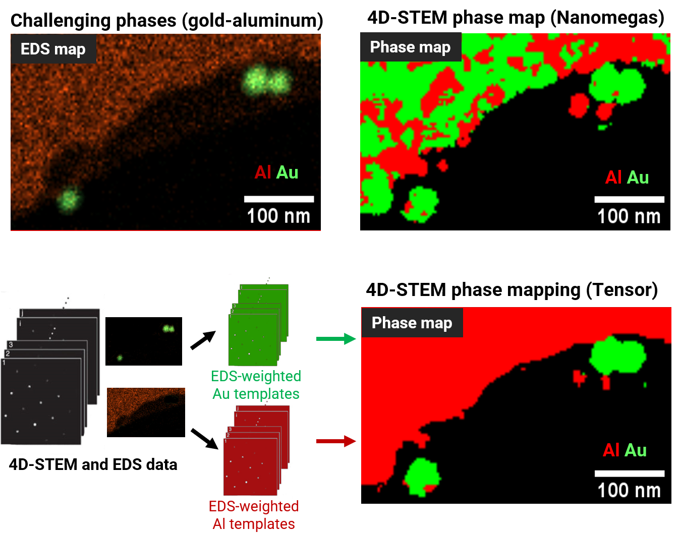 Resolve structurally similar crystalline phases with Tescan TENSOR by combining synchronized 4D-STEM and EDX signals for precise and reliable phase mapping.