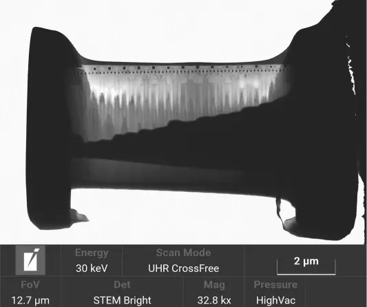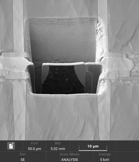 Tescan SOLARIS X 2 delivers fast, high-current Xe plasma FIB milling and precise low-current thinning, ensuring optimal thickness and structure preservation. Its inert Xe ion source enables clean lamella preparation for advanced semiconductor failure analysis without the contamination that occurs with gallium FIB sample preparation.