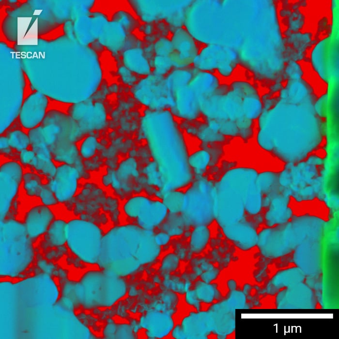 Analyze the chemical and structural homogeneity of electrode materials. Study the volume distribution of particles, binder, carbon black, and porosity through 3D tomography, using SEM, EDS, and ToF-SIMS data collection.