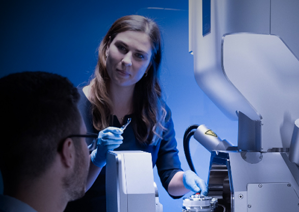Identifying the region of interest with SEM and correlative imaging.