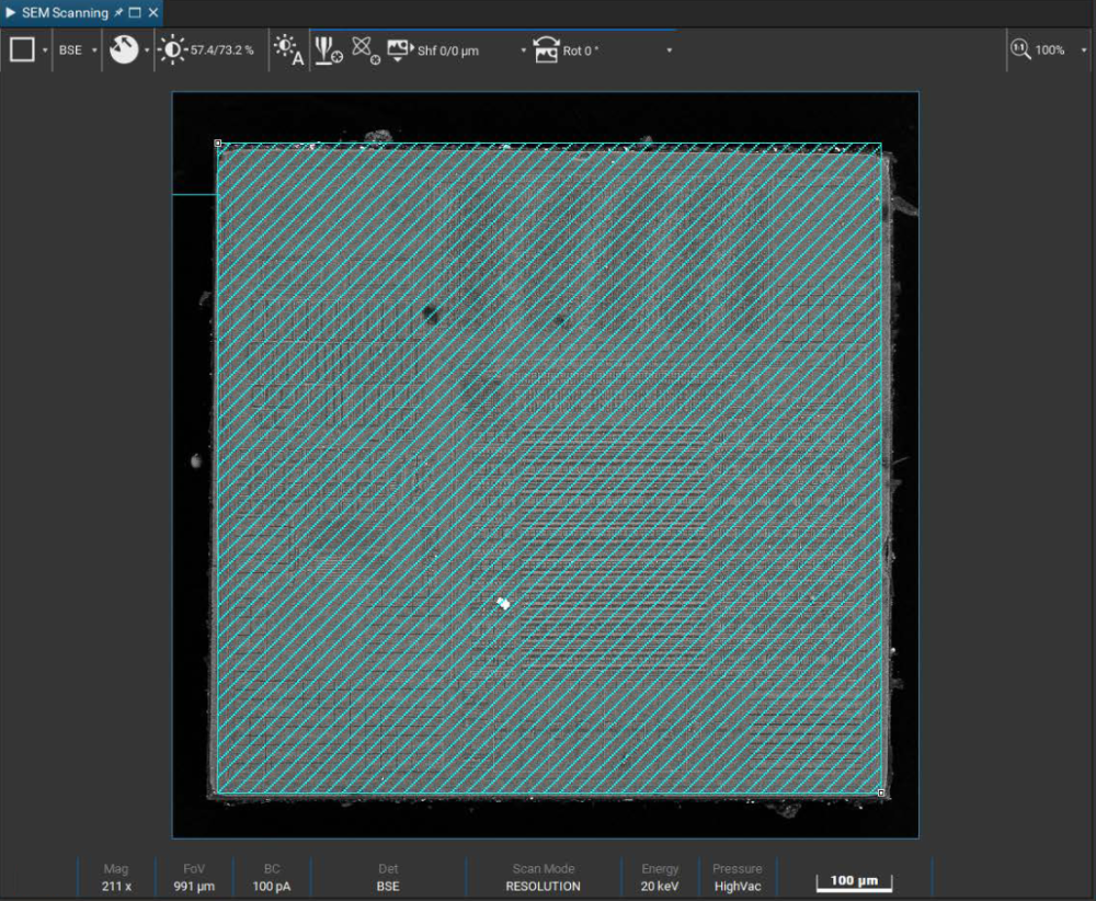 Begin with a clear SEM overview at magnifications as low as 2×. Wide Field Optics™ supports fast, confident movement across large, complex, or tilted samples without switching to an optical camera.