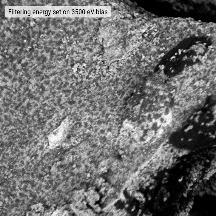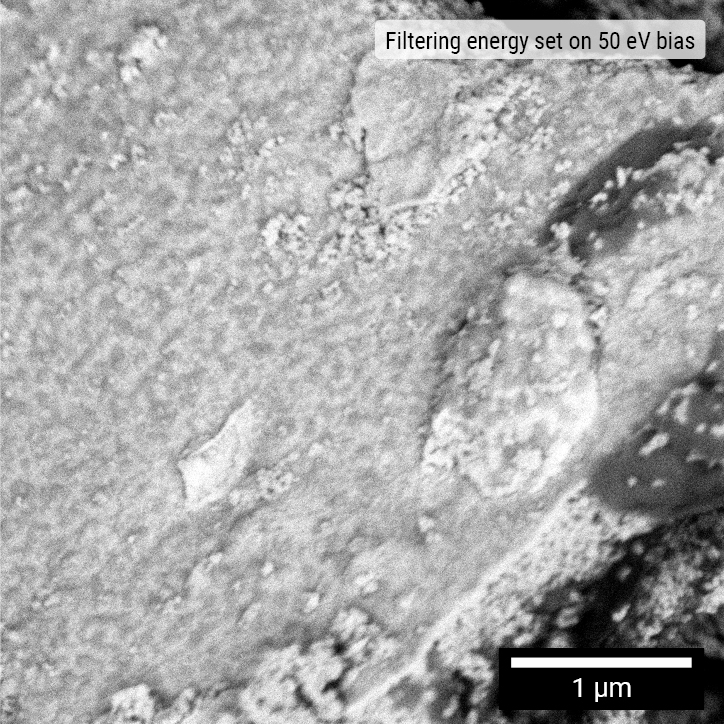 downhole features and enables display of material contrast, topography or both in a single image. TESCAN CLARA’s in-column detection system utilizes a unique design featuring both our Multidetector for collecting electrons according to take-off angle and energy, and our Axial detector for high efficiency SE signal collection at any landing voltage.